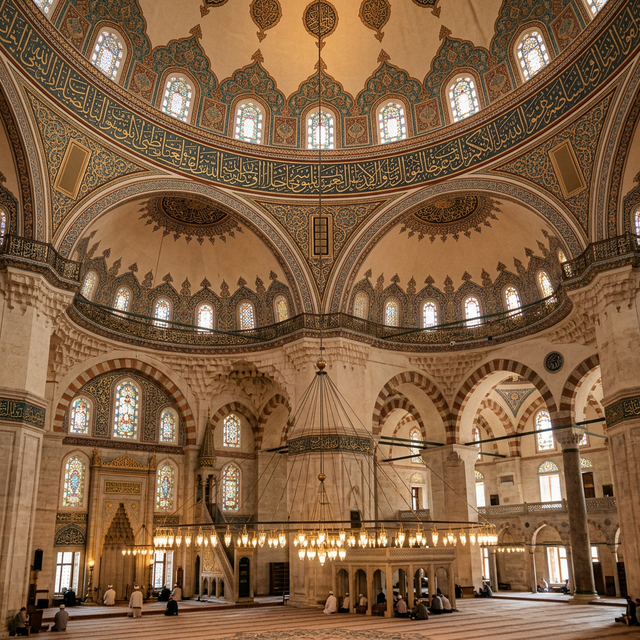 İbadethane atmosferini bozmadan modern LED teknolojilerinin ve geleneksel avizelerin entegrasyonu.