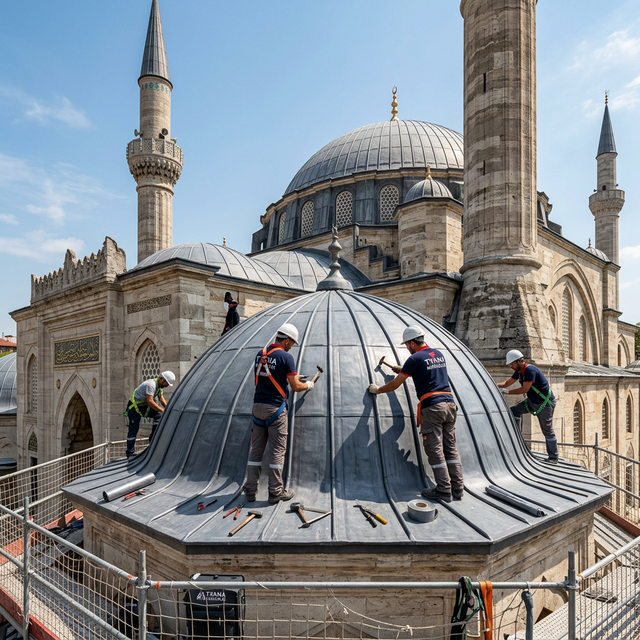 Cami kubbelerinde ve kemer üst yapılarında su yalıtımının garantisi olan kurşun işçiliğinin teknik detayları....